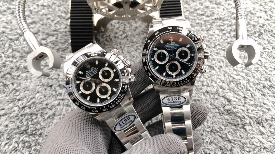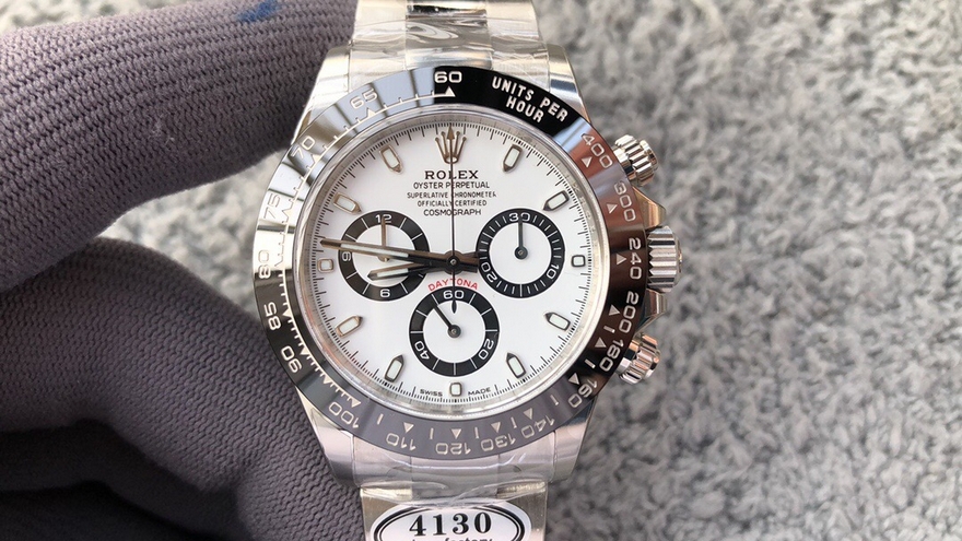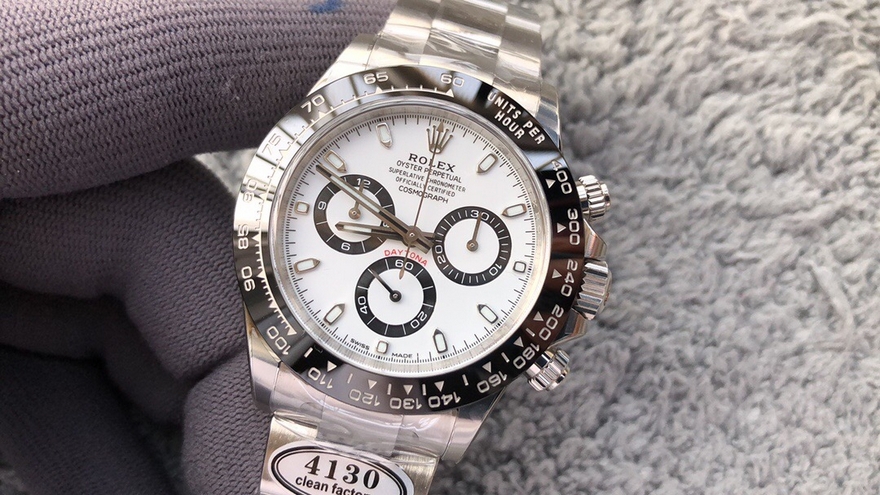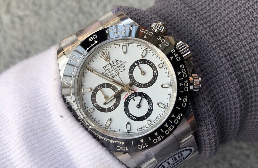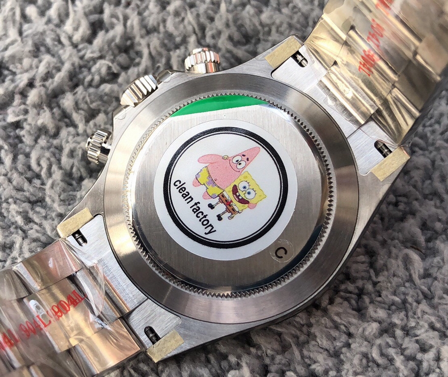 【品牌】劳力士【产品介绍】Clean 熊猫迪 完美超越 壳带 盘针。亮点是机芯。同款4130机芯。clean厂/c厂迪通拿使用904L材料 4130机芯/n厂同款机芯 ar表带 clean表盘/*死白色*唯一对版clean陶瓷圈buff工厂指针厚度12.2-12.3之间 本次手表的特点 玻璃和表壳衔接的地方 完全透明,看不到任何白边 玻璃边缘弧形跟原装一致 玻璃凸出陶瓷圈高度 跟原装一样---------陶瓷圈使用clean 字体更加立体圆润 陶瓷圈边缘有轻微圆角---------表盘 唯一一个使用 *死白色*其他都会发黄/发红后续会放出各大代用字面对比/真假对比字钉有圆角打磨 夜光填充高度适中 亮度也ok字体印刷立体 黑色小圈尺寸与原装一致 表带 和表壳衔接的地方 顶部 无缝衔接 尖角那里 表带/表壳 配合 无缝隙 表带/壳 头粒 顶部与表壳持平 尾部略微凹陷 表带/壳 头粒 底部与壳 在头部 呈凹陷状 与原装一致【款式】男款【尺寸】40mmx12.3mm【表带】精钢表带【镜面】蓝宝石镜面【机芯】Cal.4130一体机芯【防水】100米防水【配件】原装盒,说明书,质保卡,吊牌,香港机打发票【品质检测】保证所有手表实物拍摄,所见即所得 , 手表发货前都会有严格检查测试,确保您收到的手表无质量问题