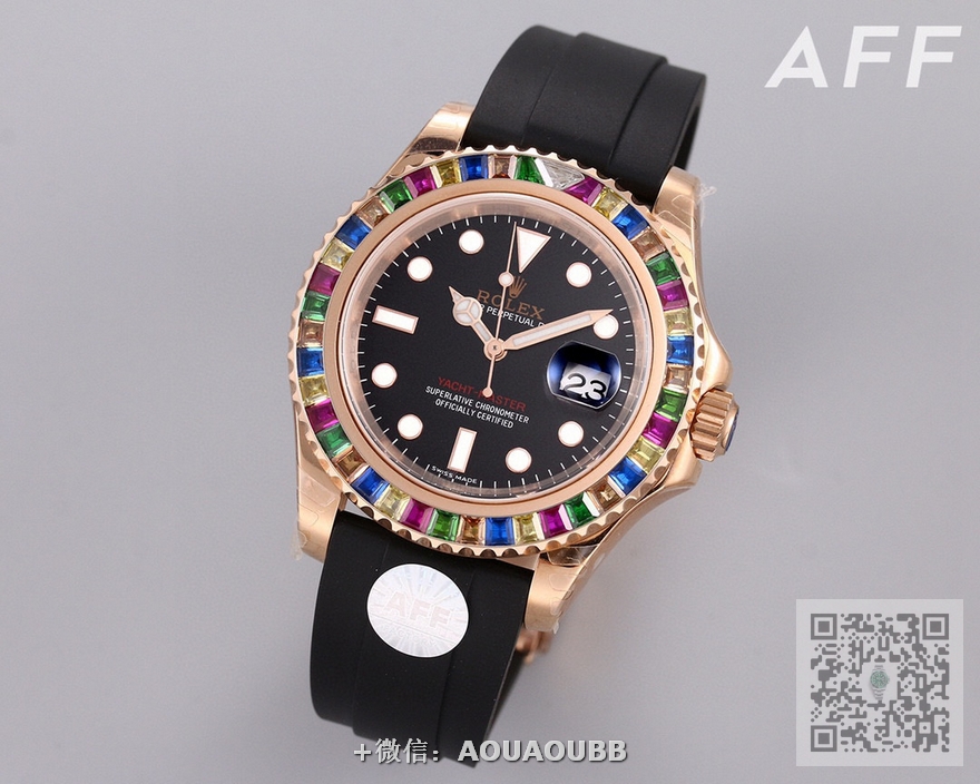 【品牌】劳力士【产品介绍】AF劳力士 ROLEX升级版新宠金游艇名仕钻款116695SATS 糖果圈劳力士彩钻,表壳外圈密集镶嵌的彩色宝石的鑫碧绿榴石闪闪发光,12点位置还镶嵌了一颗白色三角形切割钻石。搭载2836机芯,蓝光放大镜,超强夜光 最强复刻。尺寸:40*11mm 配送一副胶带跟专用螺丝刀,独家质量【款式】男款【尺寸】直径40mm【表带】原装橡胶表带【镜面】蓝宝石镜面【机芯】ETA2836机芯【防水】100米【配件】原装盒,说明书,质保卡,吊牌,香港机打发票【品质检测】保证所有手表实物拍摄,所见即所得 , 手表发货前都会有严格检查测试,确保您收到的手表无质量问题