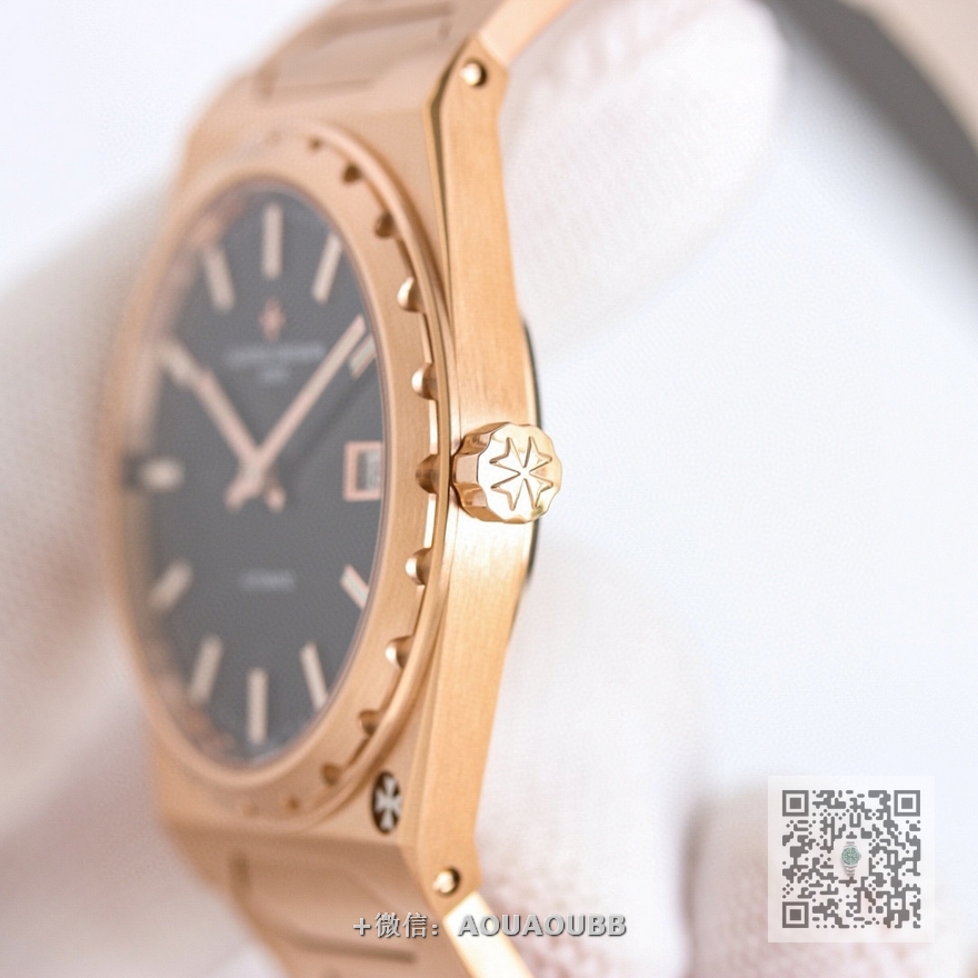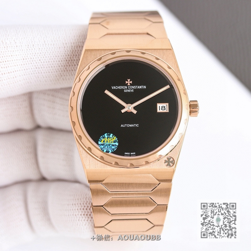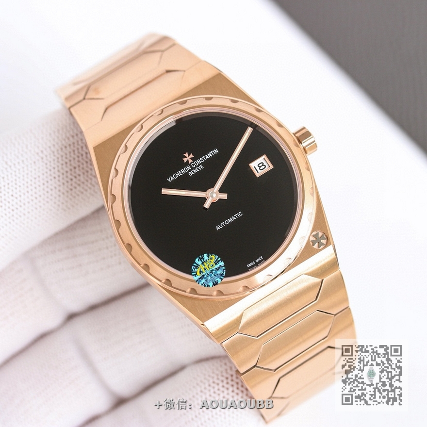 【品牌】江诗丹顿【产品介绍】8F经典复刻 复古且时髦,深受众多明星追捧——江诗丹顿重新重磅推出历史名作系列标志性豪华运动型腕表以纪念品牌成立222周年。表壳:尺寸37MM X8MM酒桶形采用三部分结构让整体并不显小,凹槽大齿轮表圈搭配5点钟位置的马耳他十字标志尽显其尊贵气息表盘:金色.玫瑰金.拉丝银及拉丝灰搭配金属拉丝附有夜光涂层的条形时标及棒状指针,保留最经典的二针机芯:9015改江诗丹顿自产2455/2机芯。从夹板到钢轮等部件均精工装饰,自动摆坨更是镀有22k黄金并篆刻222字体表带:采用一体式六边型中央链节让整表更显棱角分明,同时又不失隽永优雅的美感即日起下单赠送mini版原装表盒一个【款式】中性款【尺寸】37mmx8mm【表带】精钢表带【镜面】蓝宝石镜面【机芯】复刻正品2455/2机芯【防水】50米【配件】原装盒,说明书,质保卡,吊牌,香港机打发票【品质检测】保证所有手表实物拍摄,所见即所得 , 手表发货前都会有严格检查测试,确保您收到的手表无质量问题