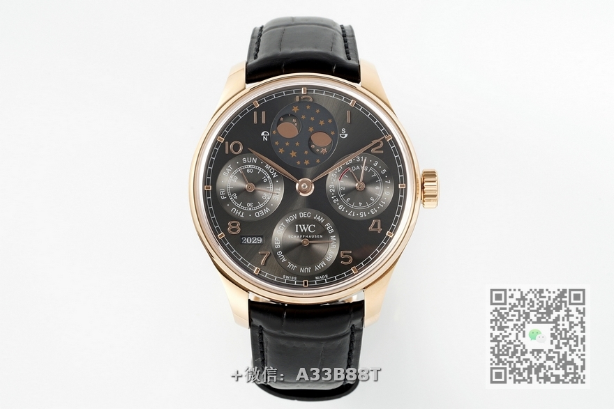 【品牌】万国【产品介绍】 APS新品 万国葡萄牙系列万年历腕表,复刻界最复杂的腕表,所有功能同步原装,所有功能调节通过把头控制【功能介绍】12点日月星辰,9点钟独立小秒针和星期指针显示,6点钟月份指针,同时联动7点钟位置的年份显示,每12个月年份跳动一下,3点钟则是最经典的动力显示指针和日期显示,每一根针都是真实可用区分市面上的小厂两根针粘在一起【做工精细】外壳采用原版同样的三件套结构,中间拉丝,上下壳为抛光,镜面采用高成本的锅盖形蓝宝石,使其质感提升【机芯性能】尺寸44.2mmX14.9mm,基础机芯采用葡七基础机芯,高效稳定,动力时间长达72小时以上,加装复杂的万年历模块,而且同步原装所有功能实现同步原装通过把头调节【品控QC】由于万年历模块十分复杂在出货前都会调准时间,客户收到直接上链上手佩戴即可,️不要轻易乱调,确实需要调节时,先把时间调到下午8点整再去调试其他功能,调试时先手动对准星期,拔出一节往上拧调节月份(12个月联动年份),往下拧三圈左右开始调节日历APS用心做表,从细节出发【款式】男款【尺寸】44.2mmx14.9mm【表带】牛皮表带【镜面】蓝宝石镜面【机芯】定制版52615机芯【防水】50米【配件】原装盒,说明书,质保卡,吊牌,香港机打发票【品质检测】保证所有手表实物拍摄,所见即所得 , 手表发货前都会有严格检查测试,确保您收到的手表无质量问题