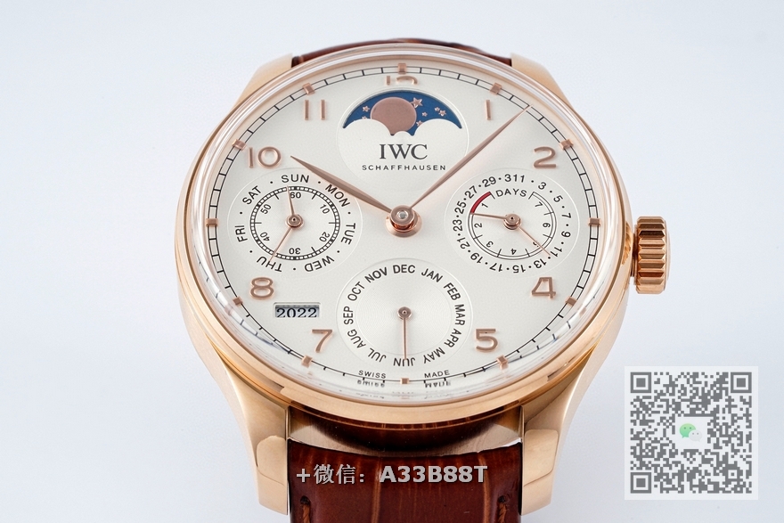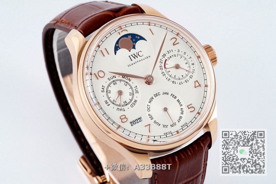 【品牌】万国【产品介绍】 APS新品 万国葡萄牙系列万年历腕表,复刻界最复杂的腕表,所有功能同步原装,所有功能调节通过把头控制【功能介绍】12点日月星辰,9点钟独立小秒针和星期指针显示,6点钟月份指针,同时联动7点钟位置的年份显示,每12个月年份跳动一下,3点钟则是最经典的动力显示指针和日期显示,每一根针都是真实可用区分市面上的小厂两根针粘在一起【做工精细】外壳采用原版同样的三件套结构,中间拉丝,上下壳为抛光,镜面采用高成本的锅盖形蓝宝石,使其质感提升【机芯性能】尺寸44.2mmX14.9mm,基础机芯采用葡七基础机芯,高效稳定,动力时间长达72小时以上,加装复杂的万年历模块,而且同步原装所有功能实现同步原装通过把头调节【品控QC】由于万年历模块十分复杂在出货前都会调准时间,客户收到直接上链上手佩戴即可,️不要轻易乱调,确实需要调节时,先把时间调到下午8点整再去调试其他功能,调试时先手动对准星期,拔出一节往上拧调节月份(12个月联动年份),往下拧三圈左右开始调节日历APS用心做表,从细节出发【款式】男款【尺寸】44.2mmx14.9mm【表带】牛皮表带【镜面】蓝宝石镜面【机芯】定制版52615机芯【防水】50米【配件】原装盒,说明书,质保卡,吊牌,香港机打发票【品质检测】保证所有手表实物拍摄,所见即所得 , 手表发货前都会有严格检查测试,确保您收到的手表无质量问题